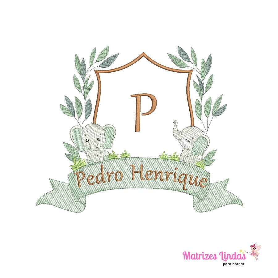 Matriz de Bordado – 160 Nomes Prontos Masculinos brasão Elefantinho Safari