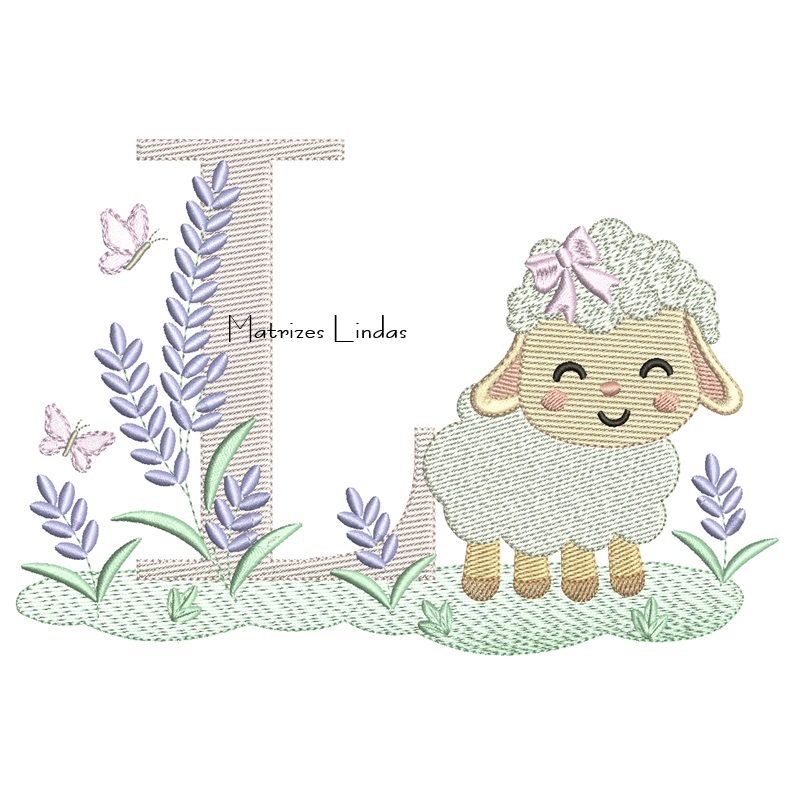 Matriz de Bordado – Coleção e Alfabeto Ovelhinha com Lavanda