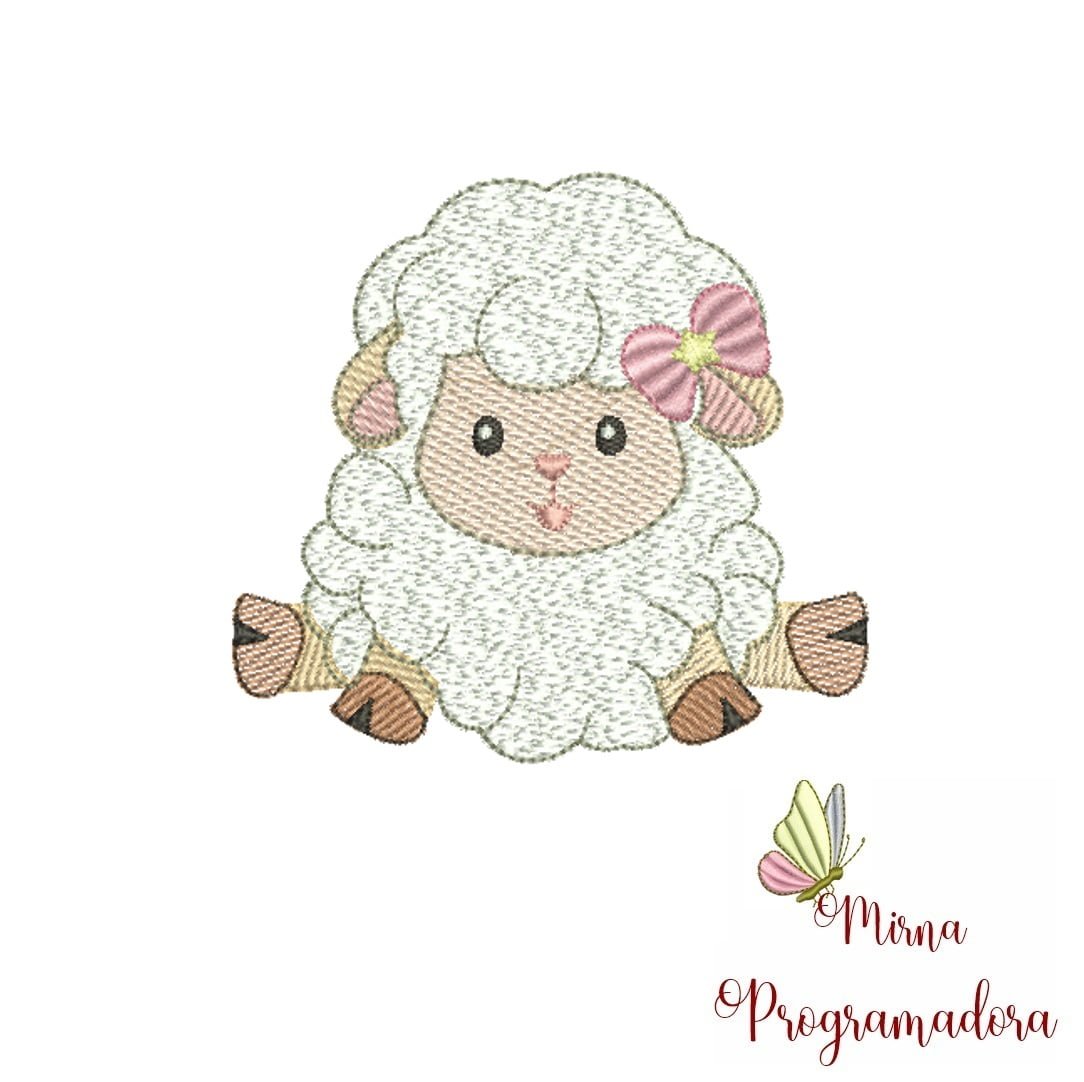 Ovelhinha menina: Tamanho: 9cm x 8,5cm / quant. de pontos: 8057 pontos (BASTIDOR: 10x10cm) (Cores 13)