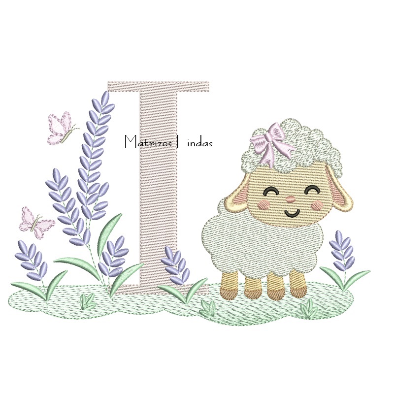 Matriz de Bordado – Letra I Ovelhinha Lavanda