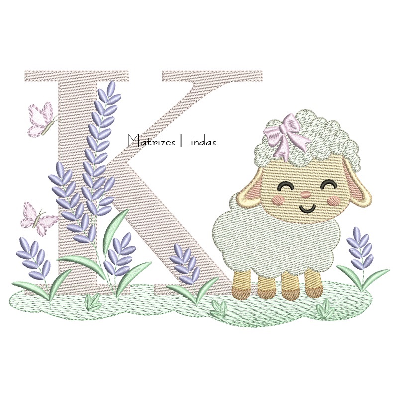 Matriz de Bordado – Letra K Ovelhinha Lavanda