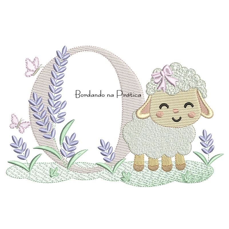 Matriz de Bordado Letra O Ovelhinha Lavanda