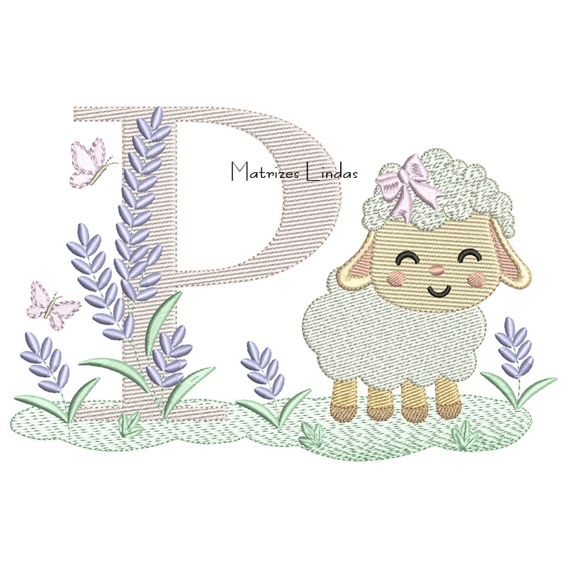 Matriz de Bordado – Letra P Ovelhinha Lavanda