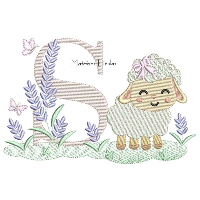 Matriz de Bordado – Letra S Ovelhinha Lavanda