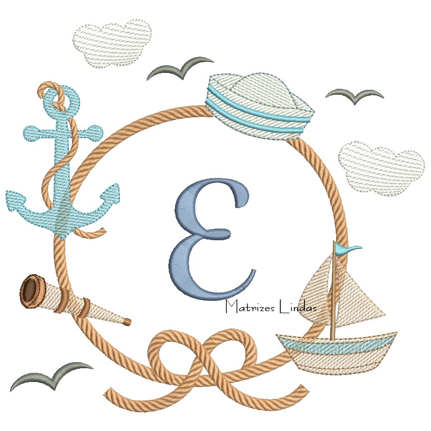 Matriz de Bordado – Moldura Marinheiro Letra E
