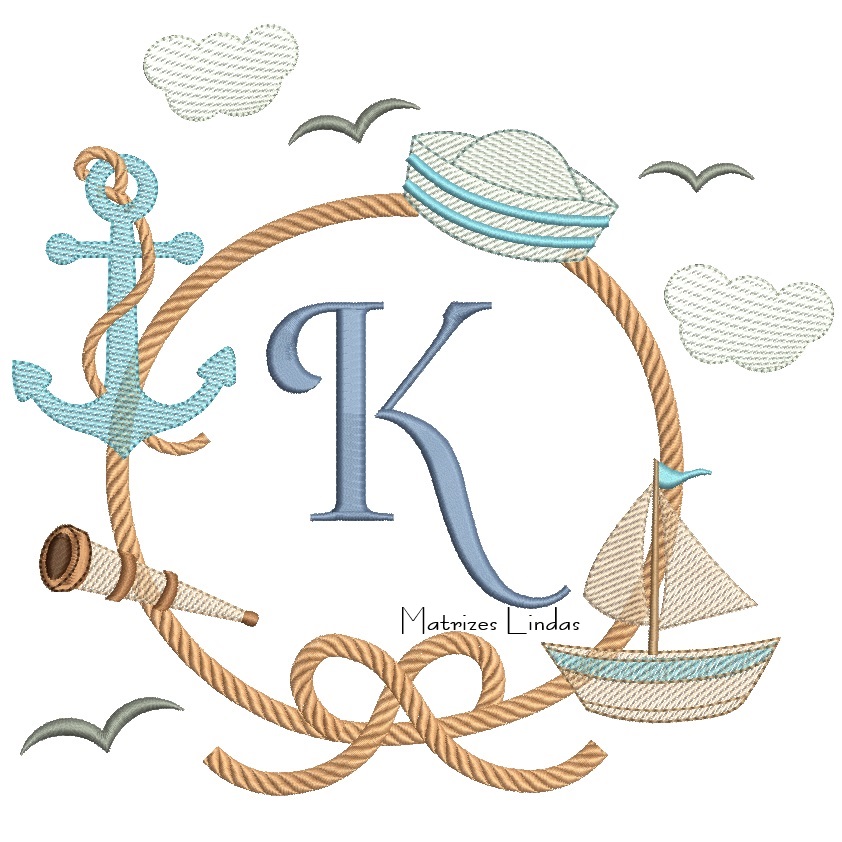 Matriz de Bordado – Moldura Marinheiro Letra K