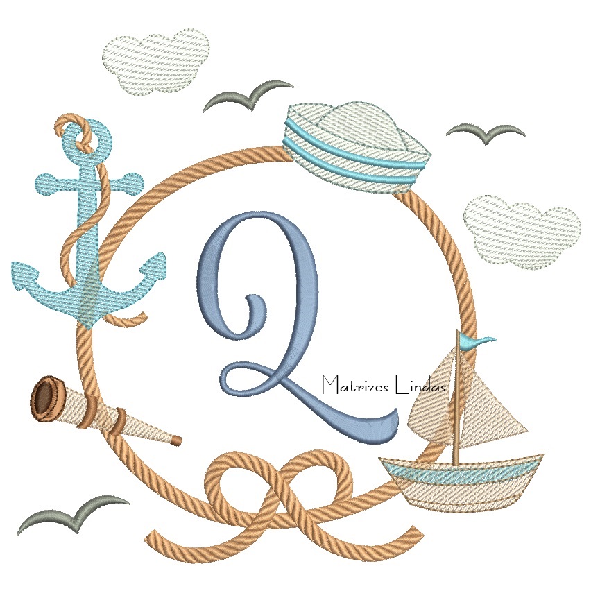 Matriz de Bordado – Moldura Marinheiro Letra Q