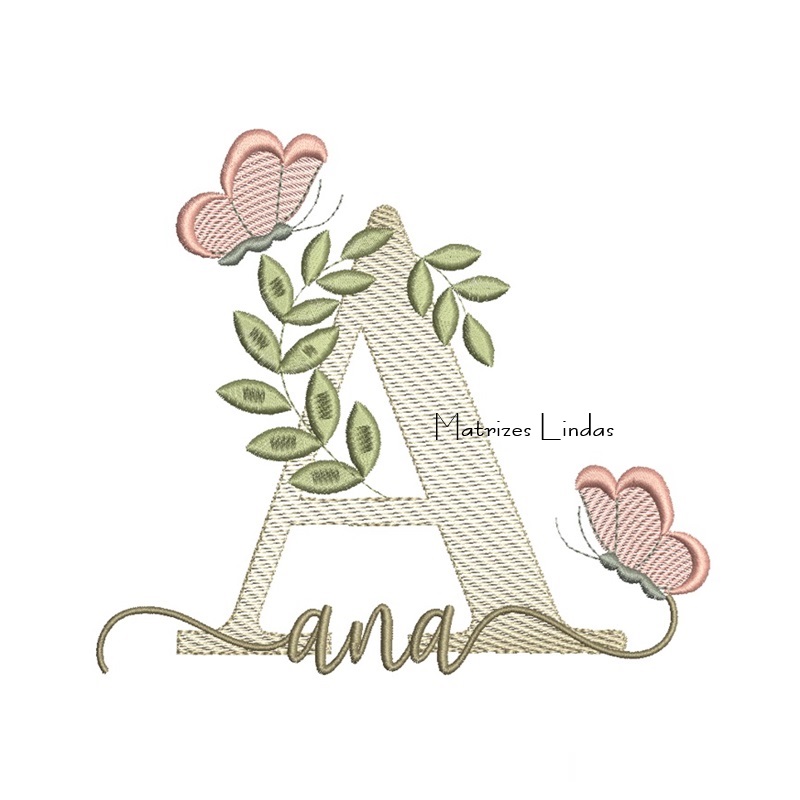 Matriz de Bordado Nome Ana folhas e Borboletas