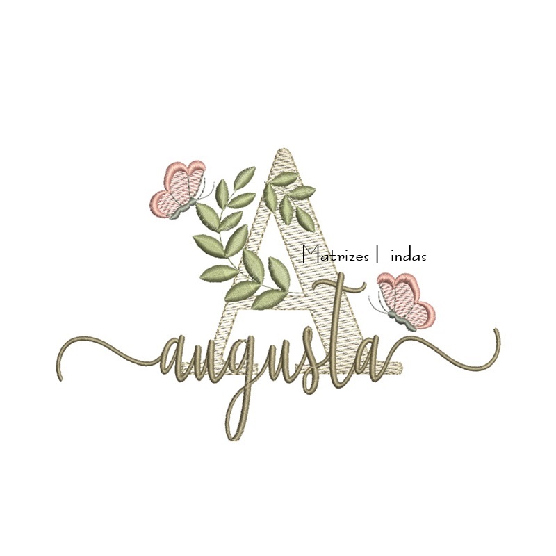 Matriz de Bordado Nome Augusta folhas e Borboletas