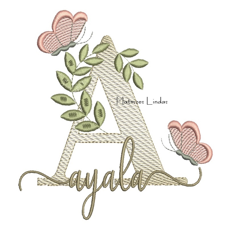 Matriz de Bordado Nome Ayala folhas e Borboletas