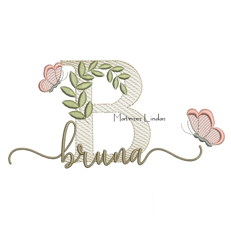 Matriz de Bordado Nome Bruna folhas e Borboletas