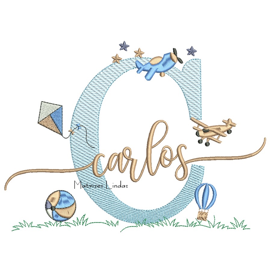 Matriz de Bordado – Nome Carlos com Brinquedos