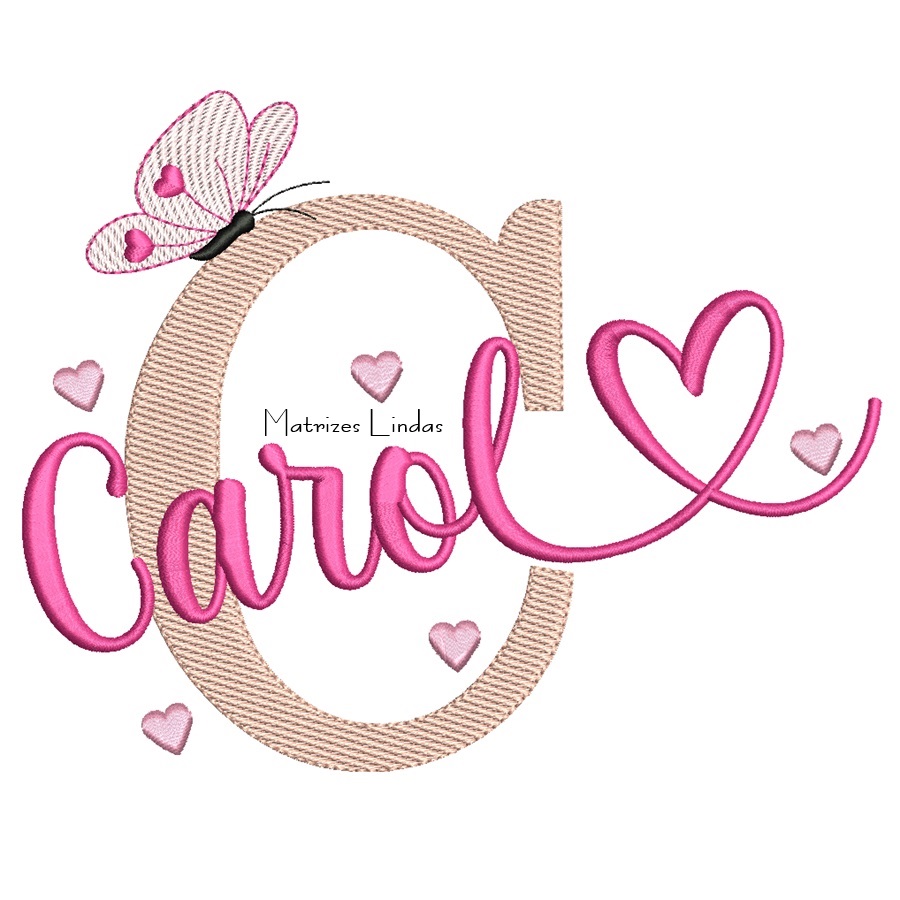 Matriz de Bordado – Nome Carol Sobreposto com Borboleta