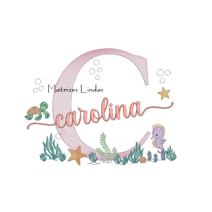 Matriz de Bordado – Nome Carolina Fundo do Mar