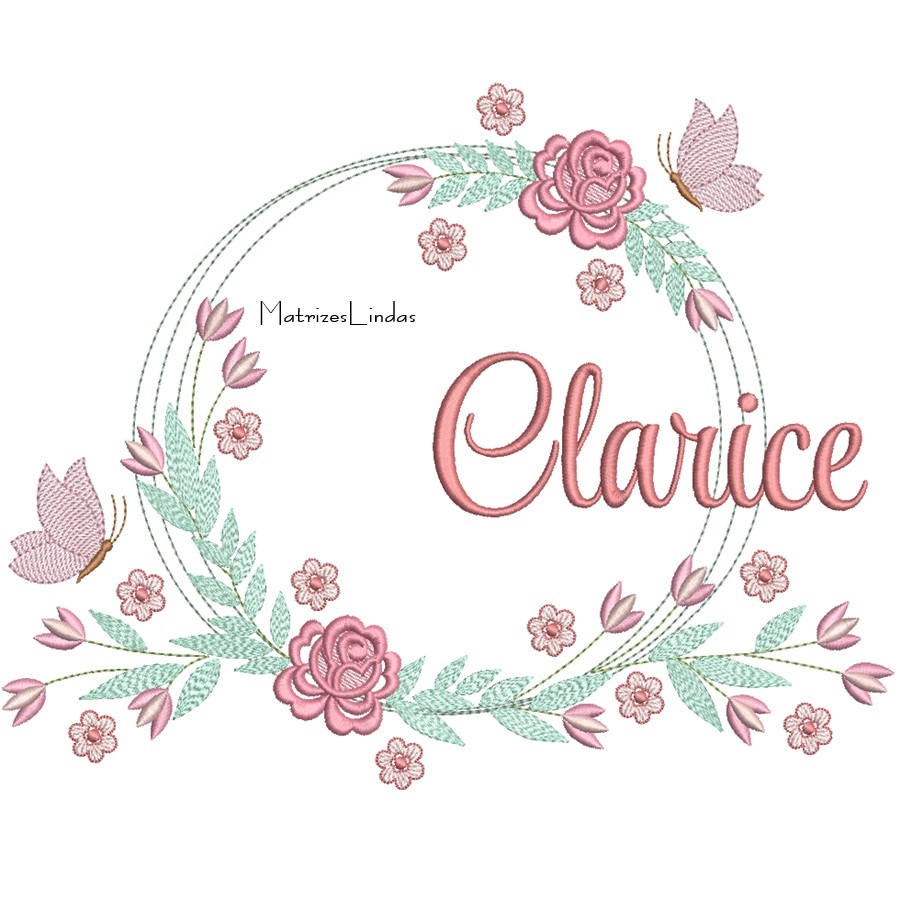 Matriz de Bordado Nome Clarice Moldura Floral para bordar