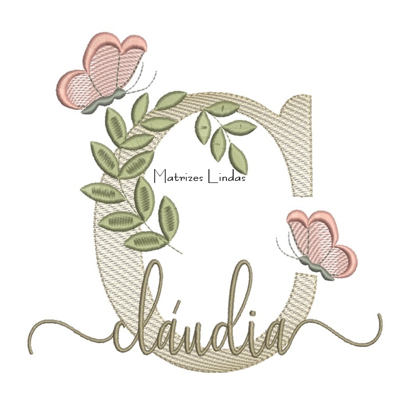 Matriz de Bordado Nome Cláudia folhas e Borboletas