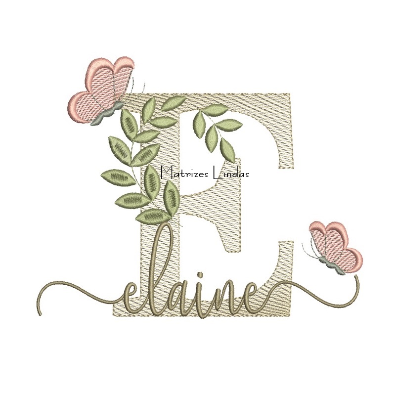Matriz de Bordado Nome Elaine folhas e Borboletas