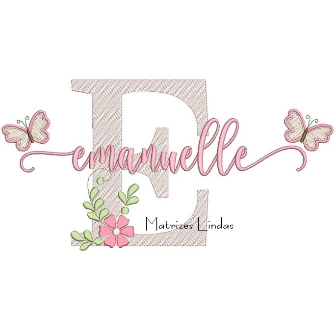 Matriz de Bordado – Nome Emanuelle com Borboletas