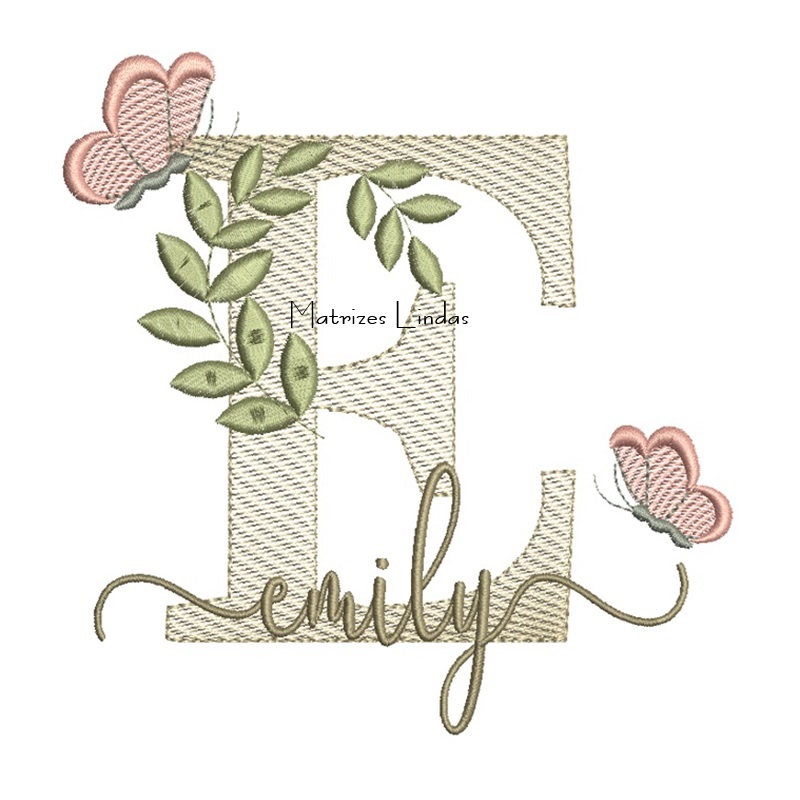 Matriz de Bordado Nome Emily folhas e Borboletas