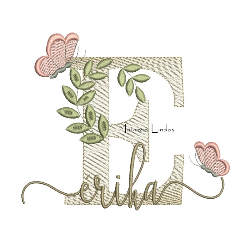 Matriz de Bordado Nome Érika folhas e Borboletas