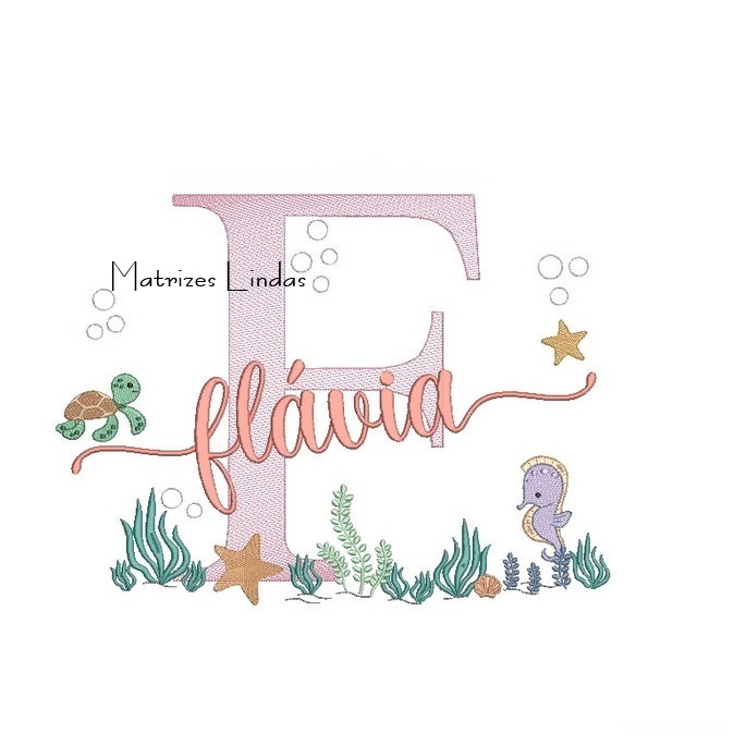 Matriz de Bordado – Nome Flávia Fundo do Mar