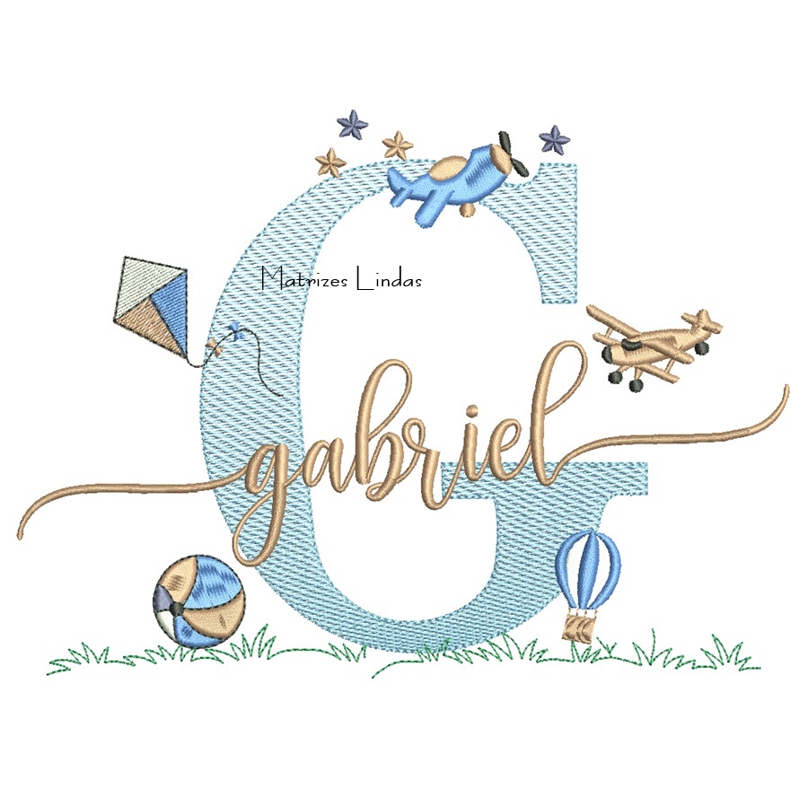 Matriz de Bordado – Nome Gabriel com Brinquedos