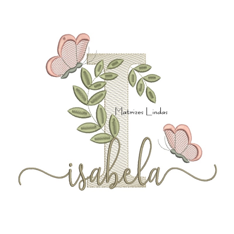 Matriz de Bordado Nome Isabela folhas e Borboletas