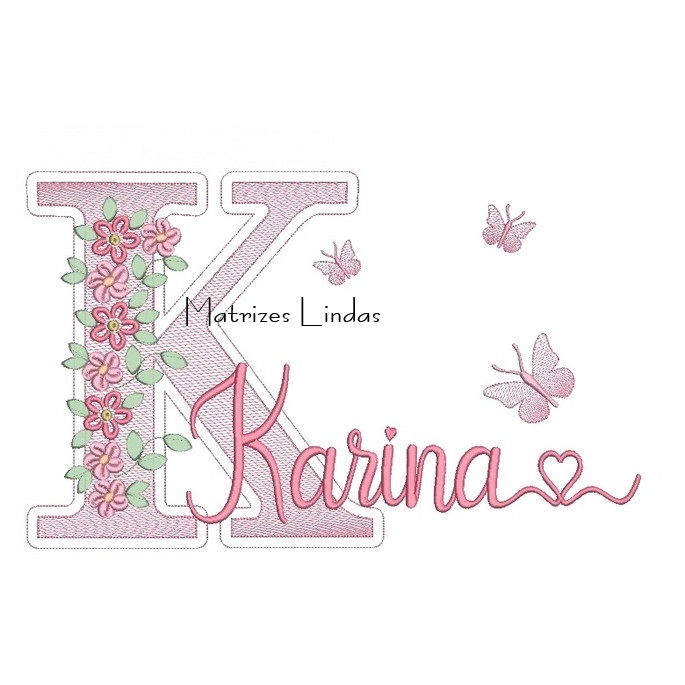 Matriz de Bordado Nome Karina Moldura Floral para bordar