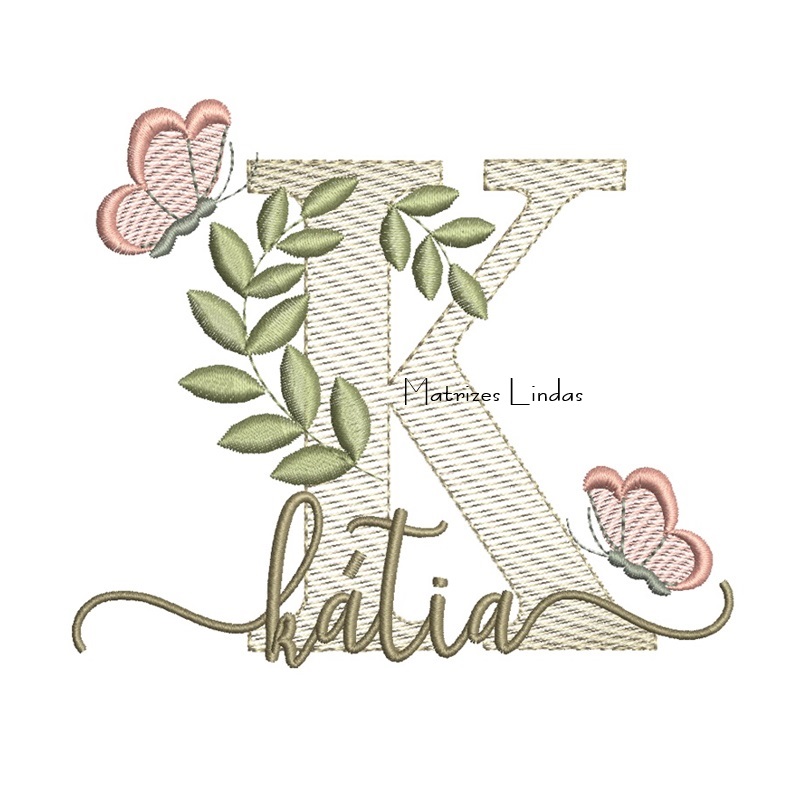 Matriz de Bordado Nome Kátia folhas e Borboletas