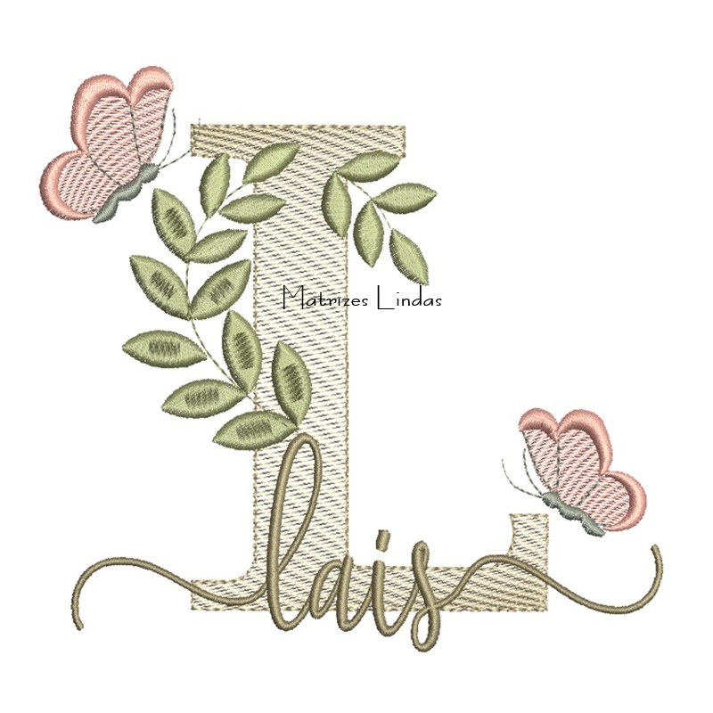 Matriz de Bordado Nome Laís folhas e Borboletas