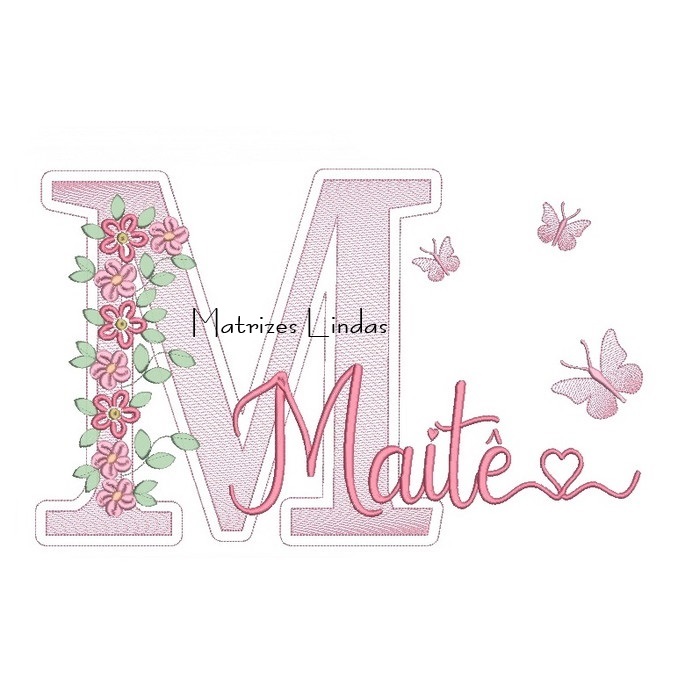 Matriz de Bordado Nome Maite Moldura Floral para bordar
