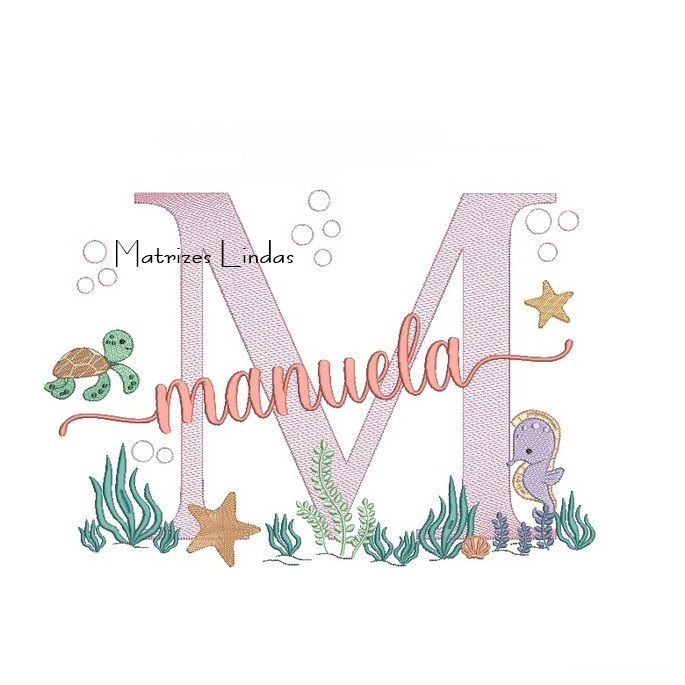 Matriz de Bordado – Nome Manuela Fundo do Mar
