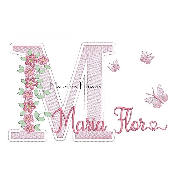 Matriz de Bordado Nome Maria Flores Moldura Floral para bordar