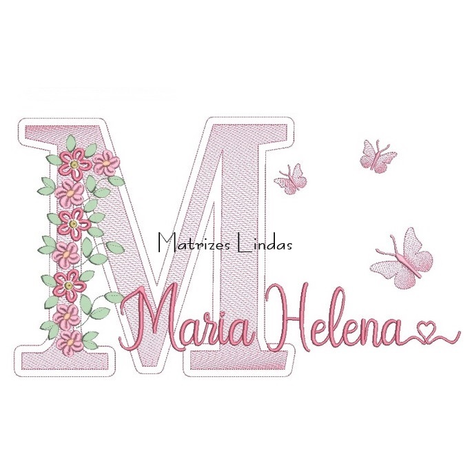 Matriz de Bordado Nome Maria Helena Moldura Floral para bordar