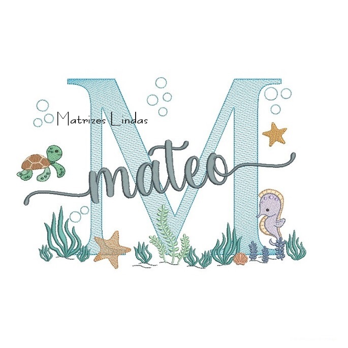 Matriz de Bordado – Nome Mateo Fundo do Mar