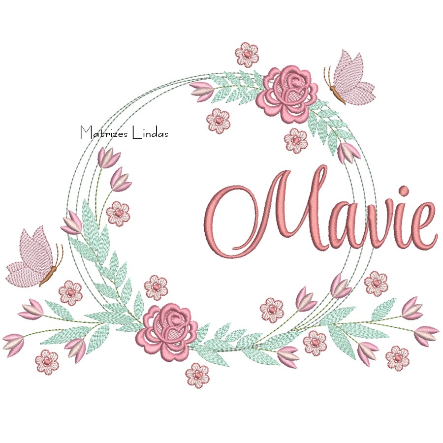 Matriz de Bordado Nome Mavie Este é um arquivo digital de matriz de bordado computadorizado, necessário máquina de bordar para a utilização do produto.