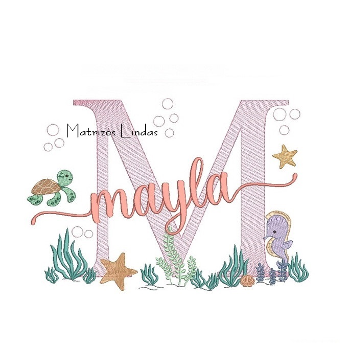 Matriz de Bordado – Nome Mayla Fundo do Mar