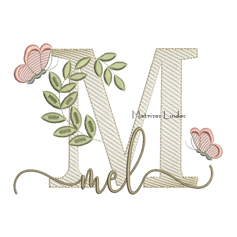 Matriz de Bordado Nome Mel folhas e Borboletas