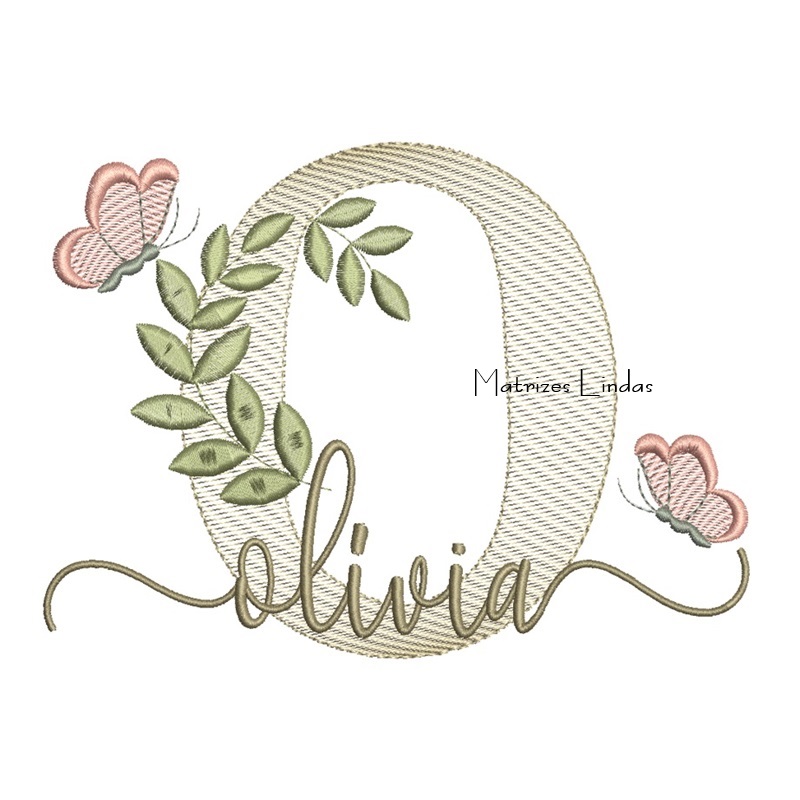 Matriz de Bordado Nome Olívia folhas e Borboletas