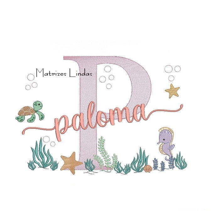 Matriz de Bordado – Nome Paloma Fundo do Mar