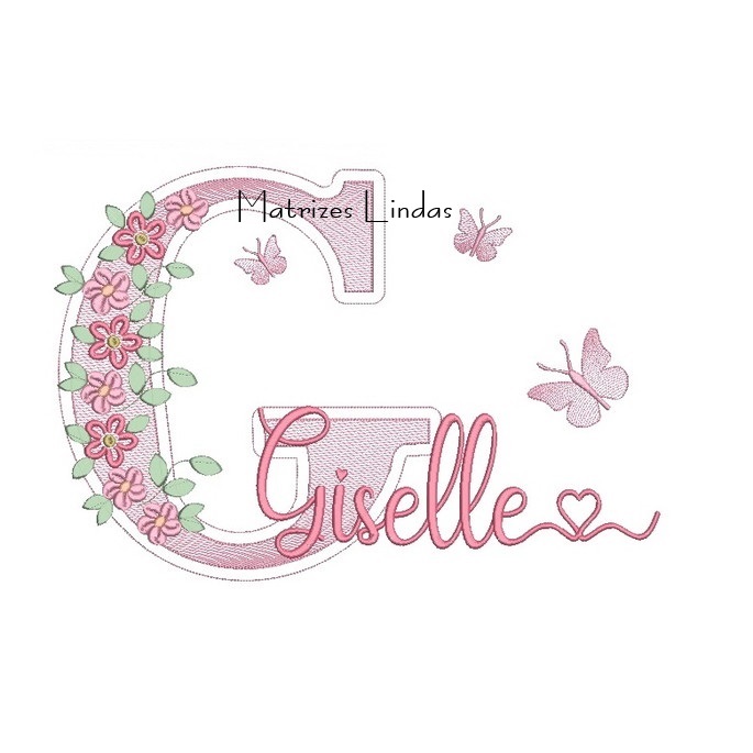 Matriz de Bordado Nome Giselle Moldura Floral para bordar