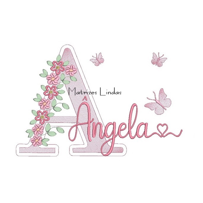 Matriz de Bordado Nome Ângela com Flores para bordar