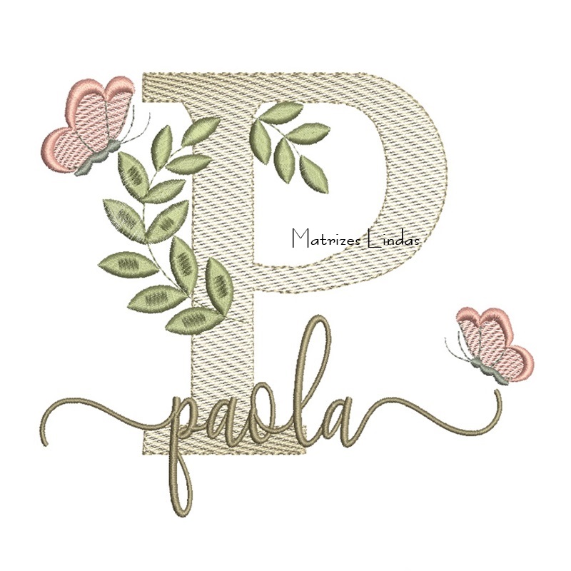 Matriz de Bordado Nome Paola folhas e Borboletas