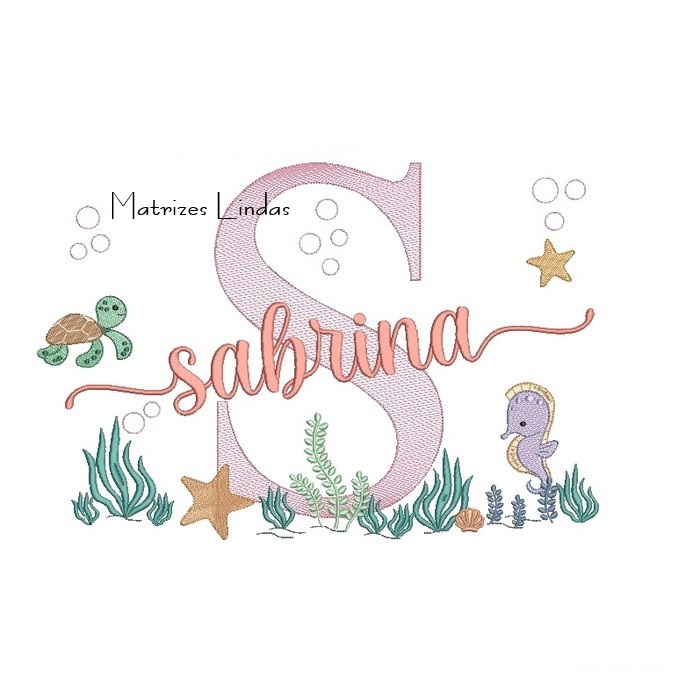 Matriz de Bordado – Nome Sabrina Fundo do Mar