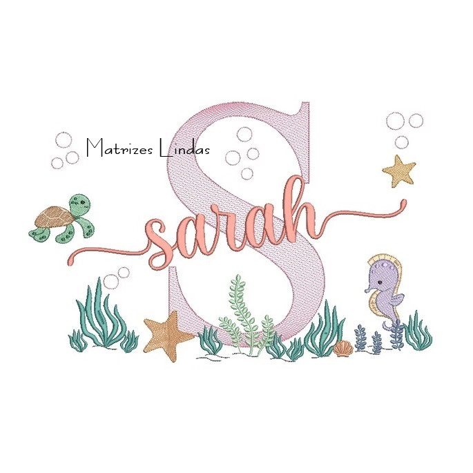 Matriz de Bordado – Nome Sarah Fundo do Mar