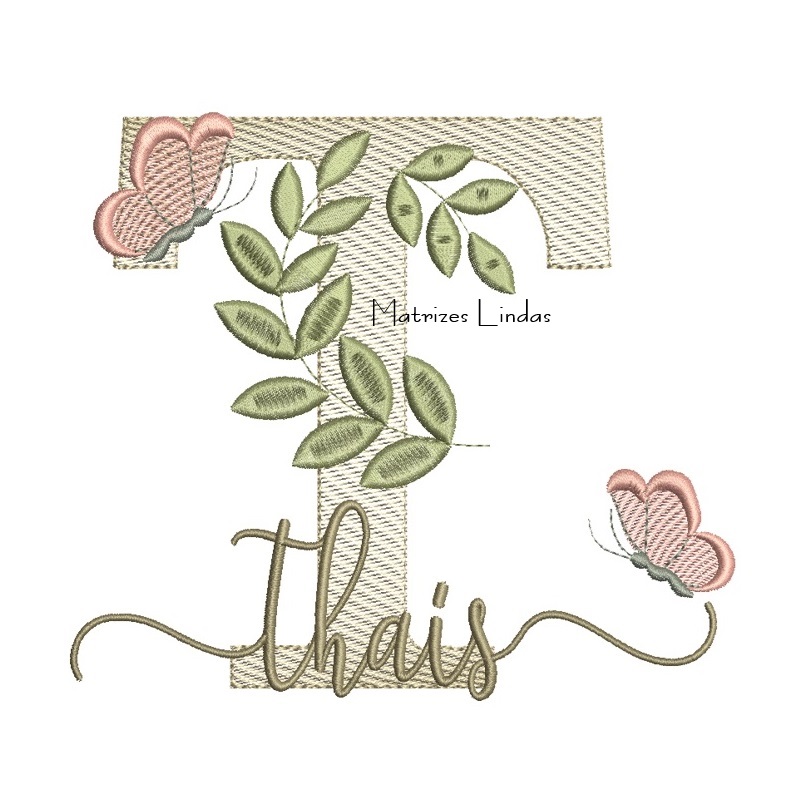 Matriz de Bordado Nome Thaís Folhas e Borboletas