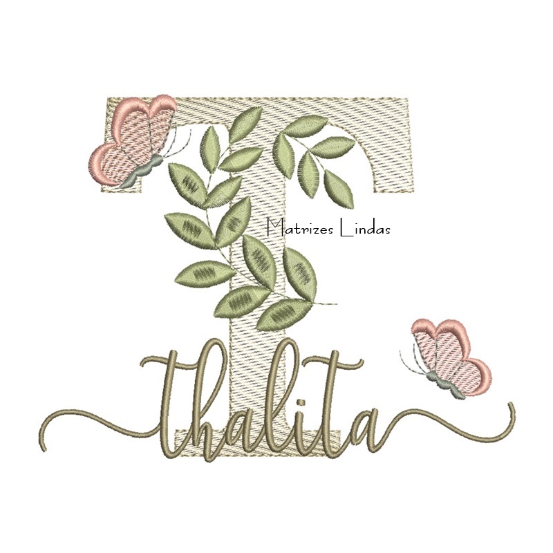 Matriz de Bordado Nome Thalita Folhas e Borboletas