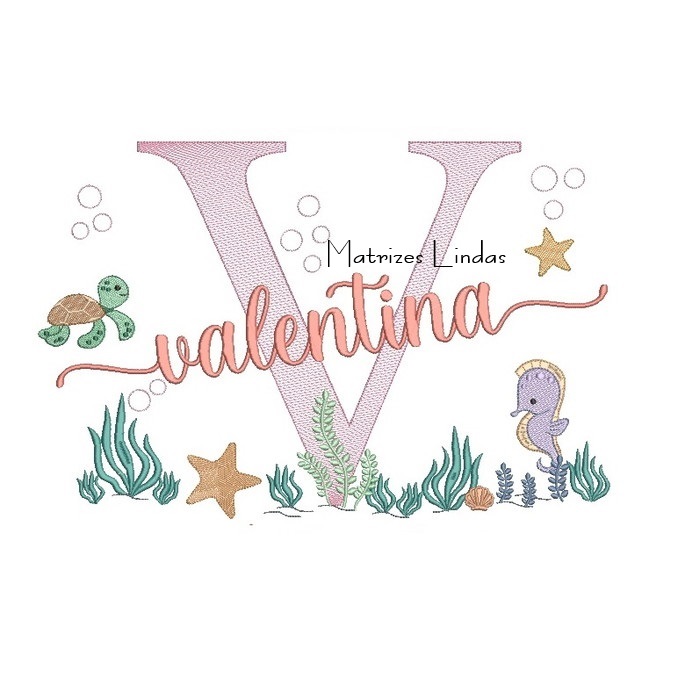 Matriz de Bordado – Nome Valentina Fundo do Mar
