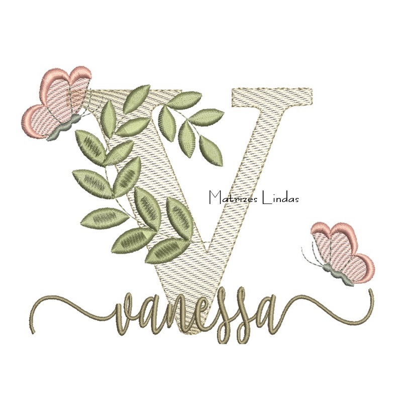 Matriz de Bordado Nome Vanessa Folhas e Borboletas