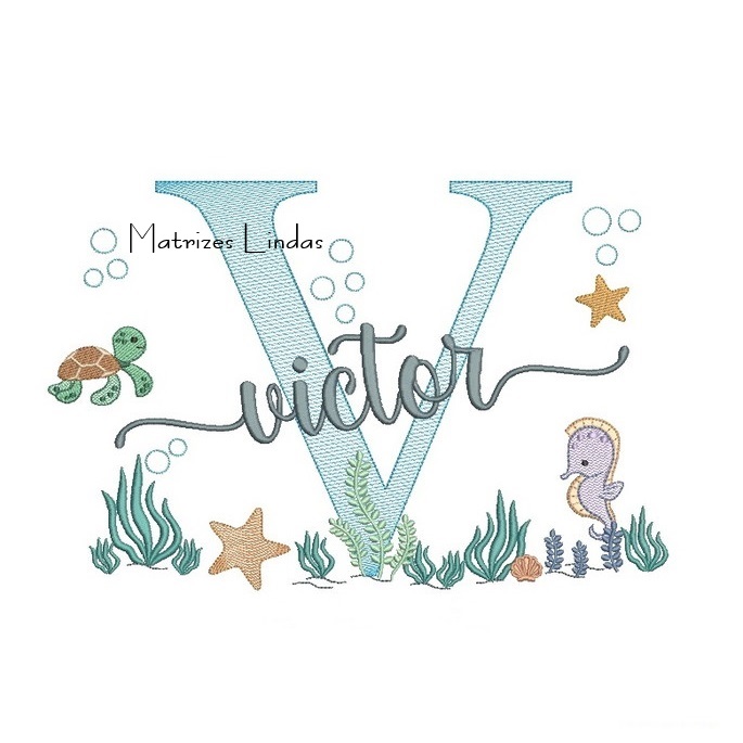 Matriz de Bordado – Nome Victor Fundo do Mar